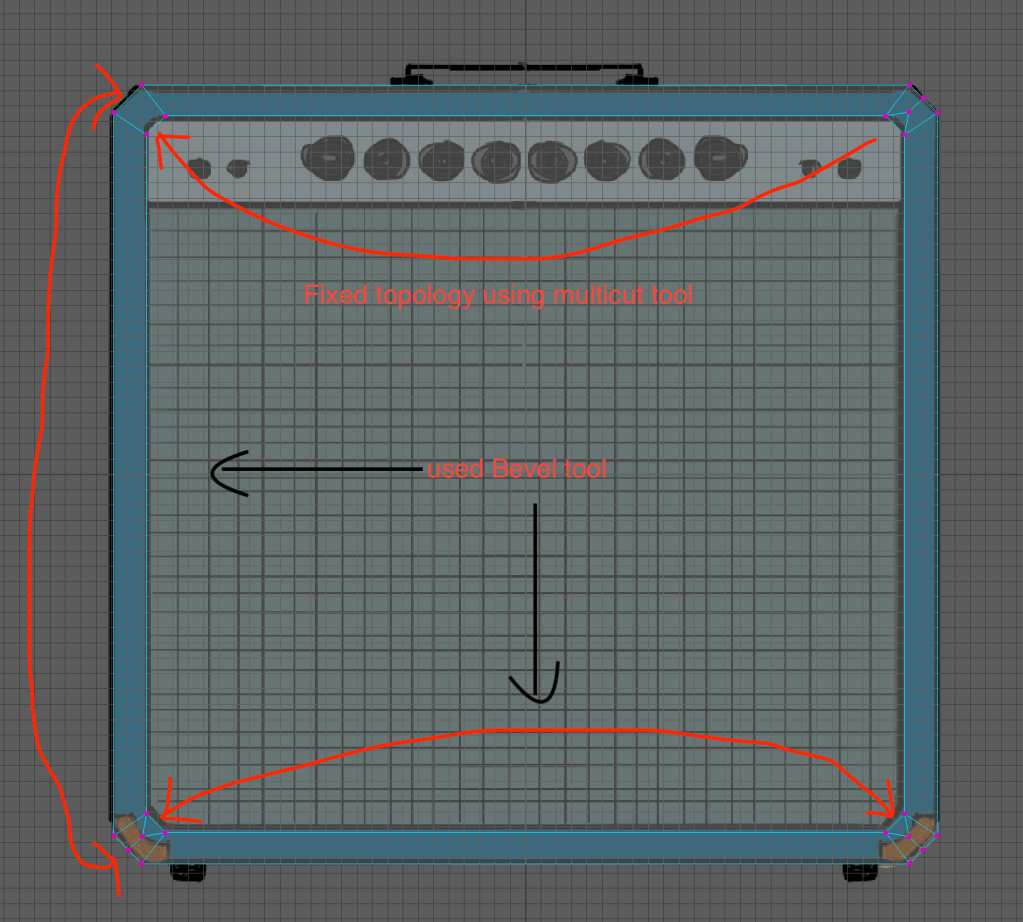 The first time I did the initial shape and then extruded inside some faces for the speaker parts but it did not look good and adding in the edge loops for the holes to retain their shape messed up the shading completely.