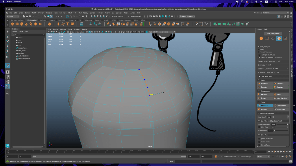 The mic head I tried to do twice. I did the mic before I realised that there is a video tutorial on Moodle so it is not great in any way but I had no time to redo it. For later practice I will redo it using that tutorial.