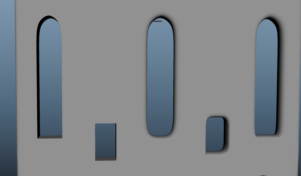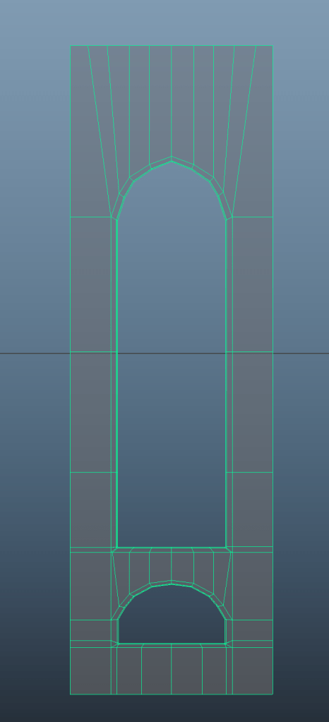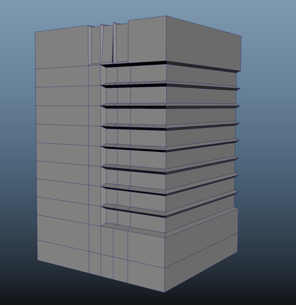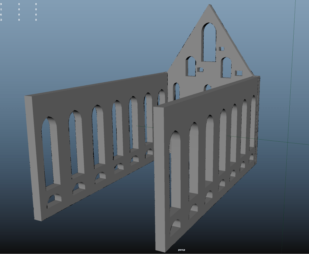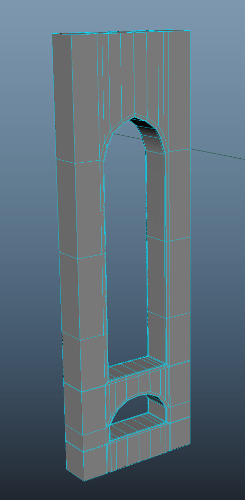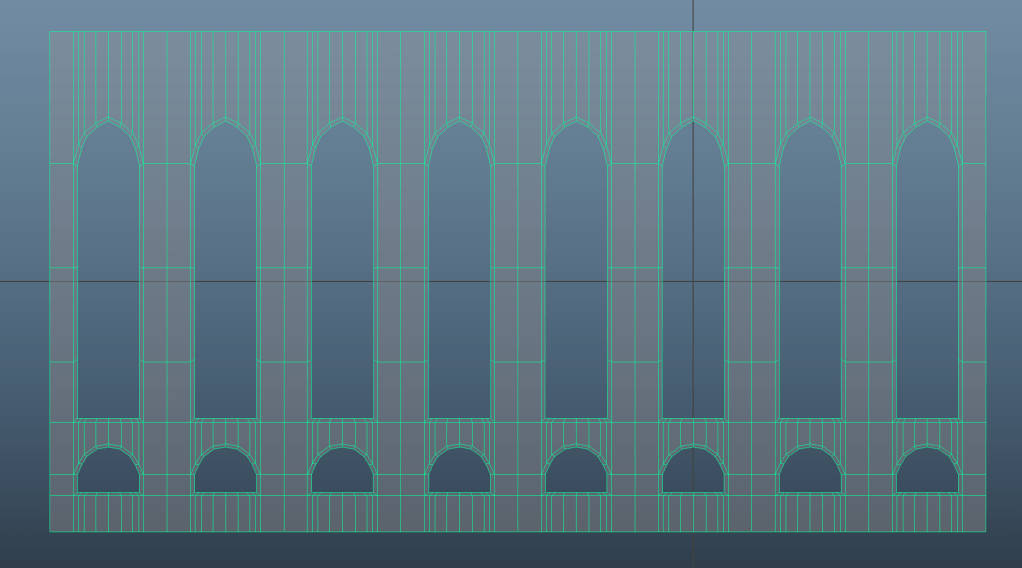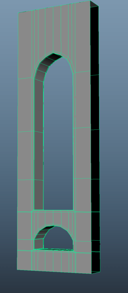 For the side wall I created one planar window and then duplicated it using the mirror tool. After having reached the desired length, I again extruded the mesh to give it 3D dimensions, added edge loops to retain the shape and adjusted the topology using edge slide.
