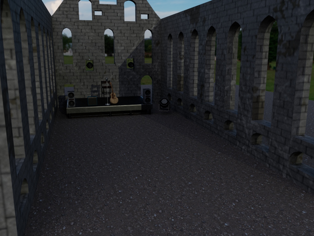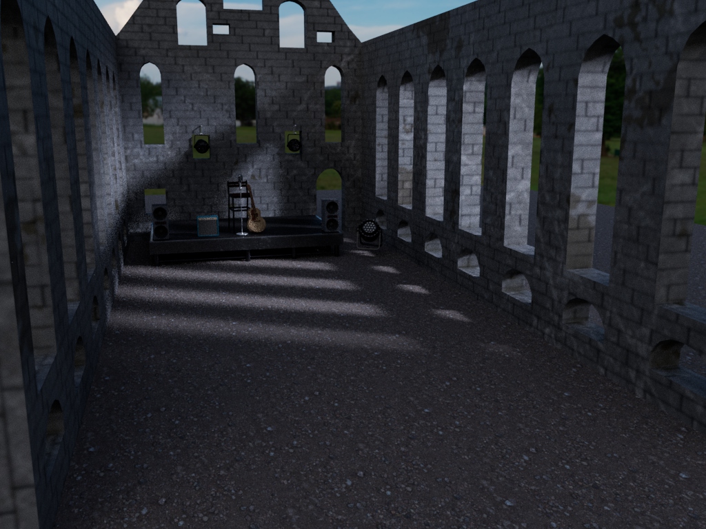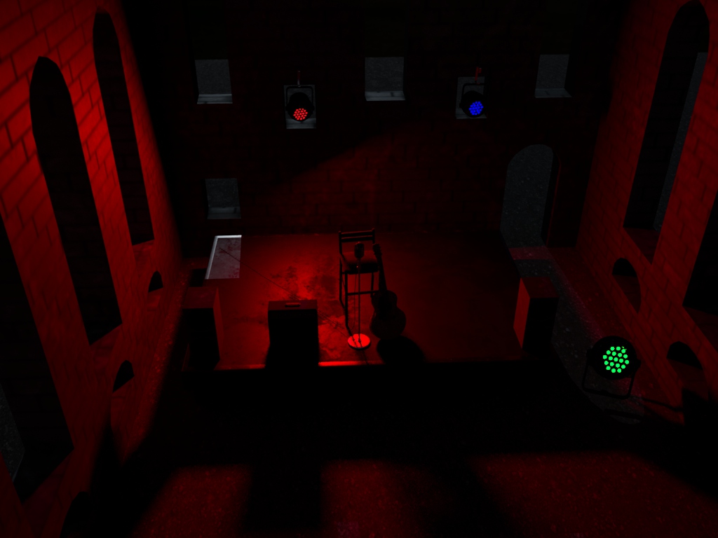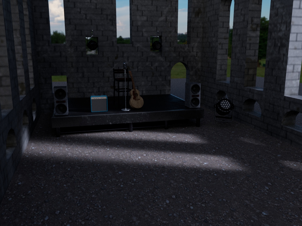 We then added in the free stage light models we got from GCTrader. The lights have different coloured mesh lights and area lights.
