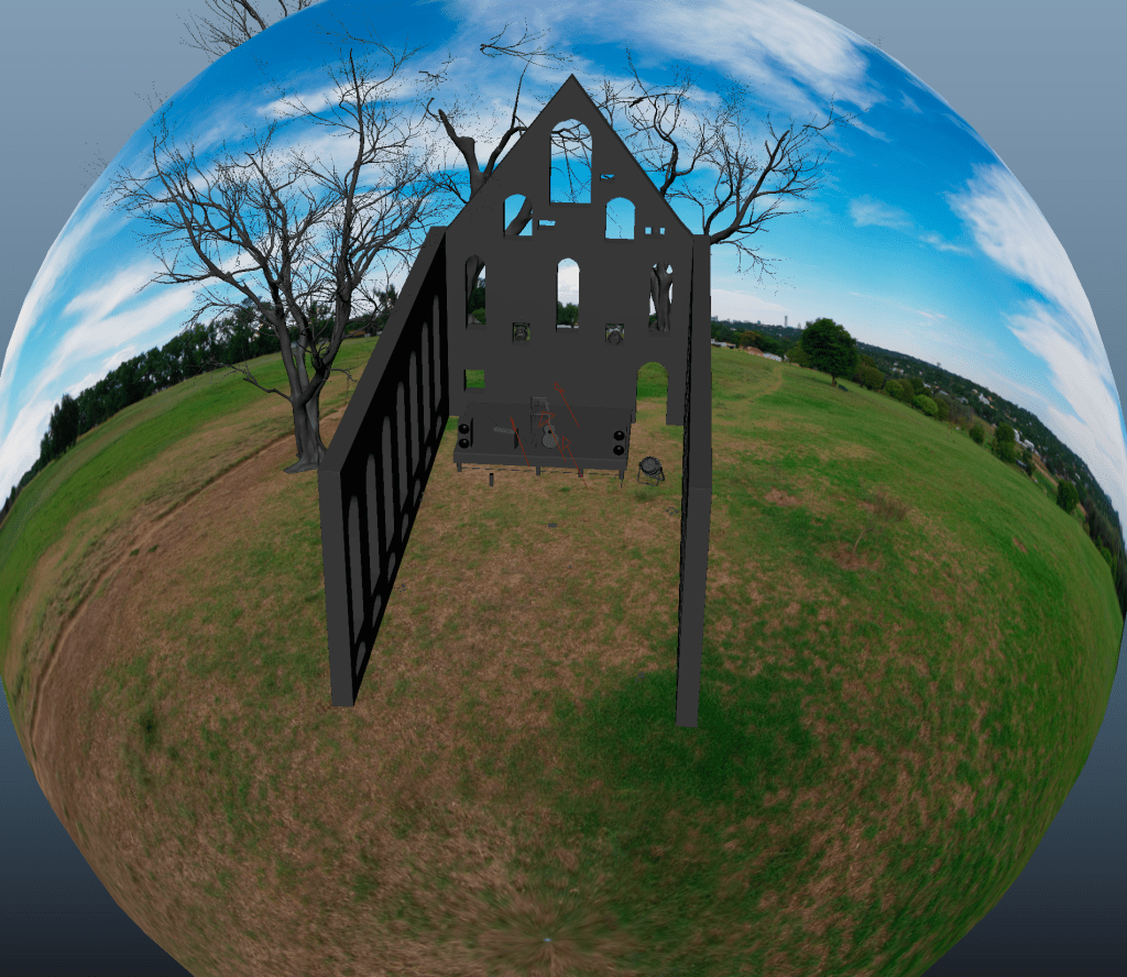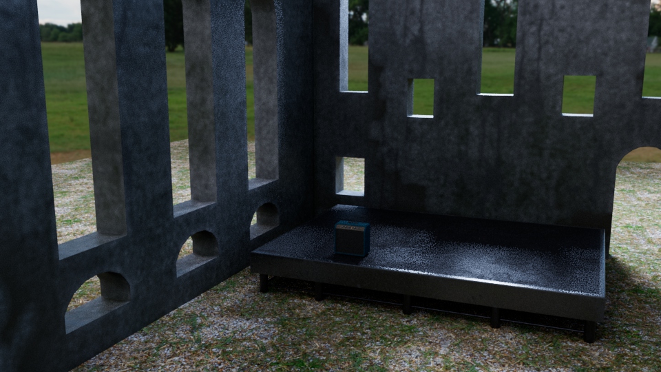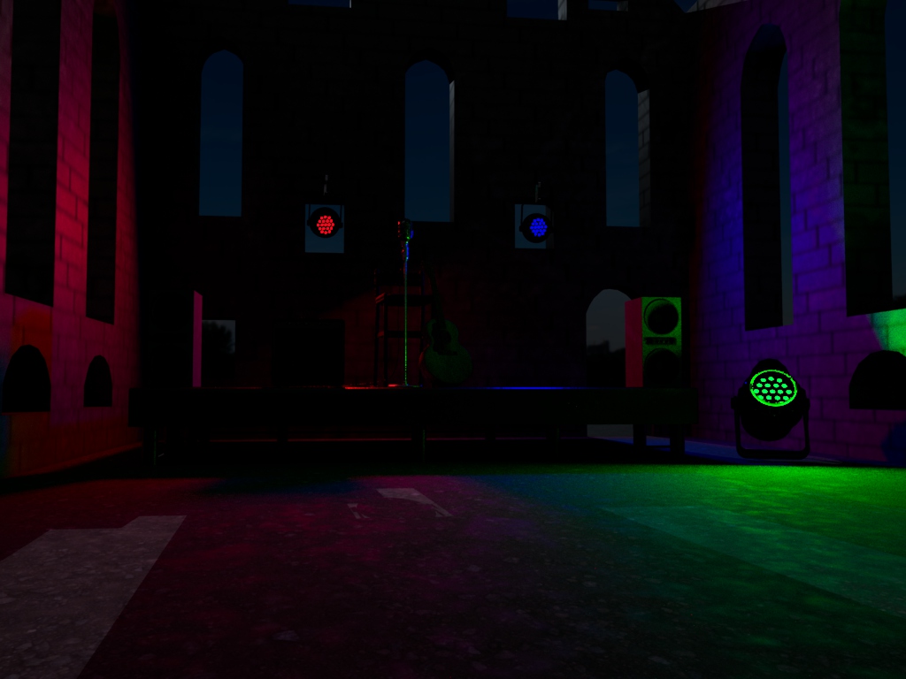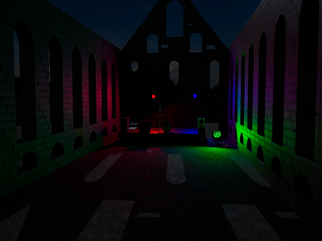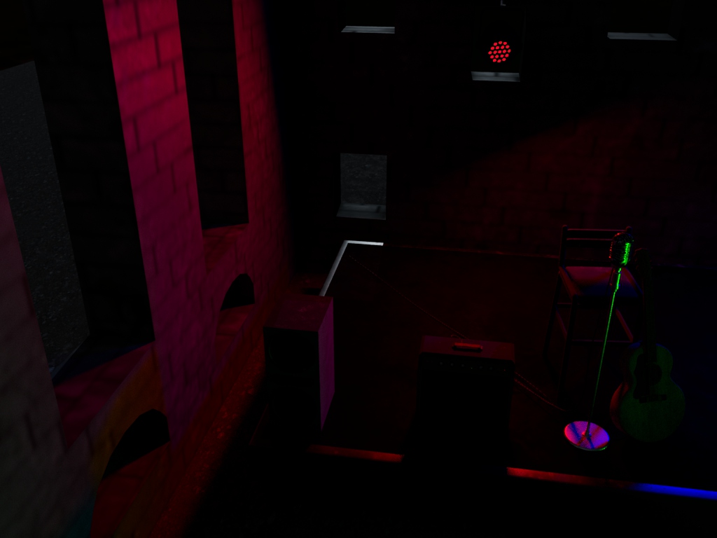 We then added in the free stage light models we got from GCTrader. The lights have different coloured mesh lights and area lights.