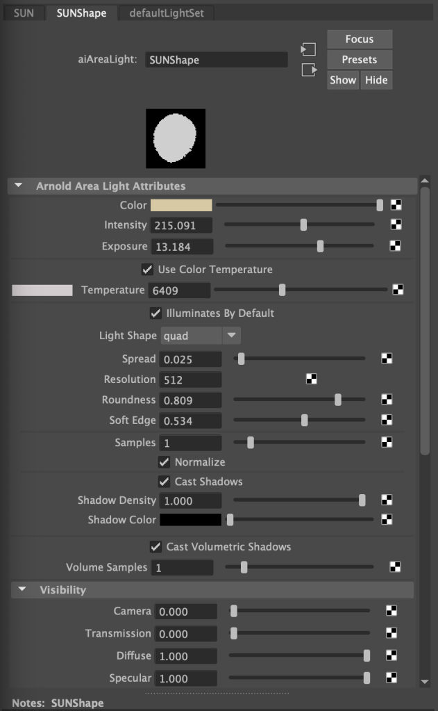 For the Sun light I tried two different versions – making the sun using Area light and then using Directional Light. Area light Sun: