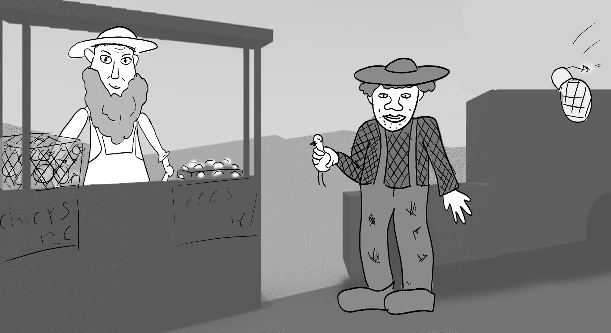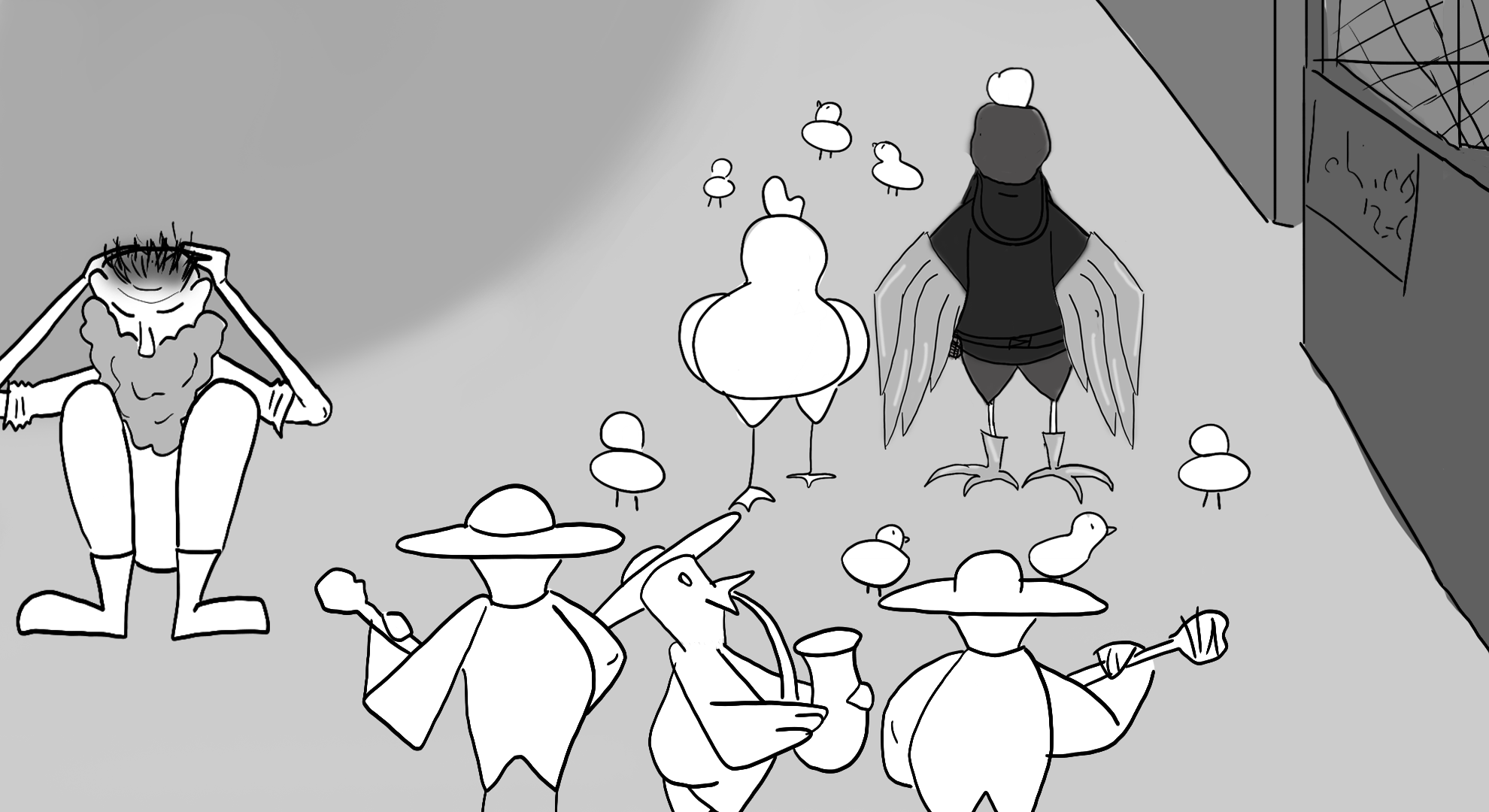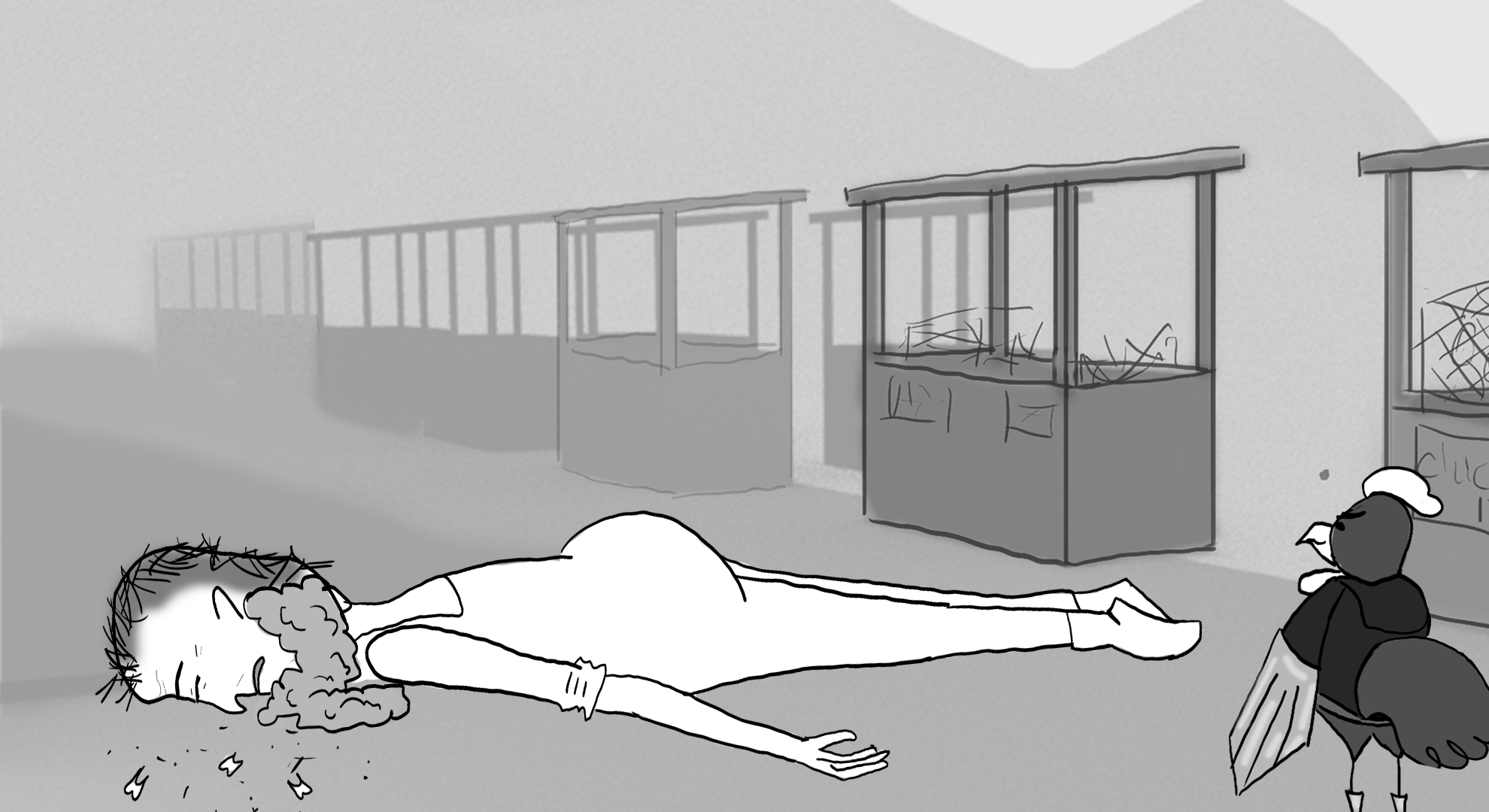 Short animation I did in tribute to an unfinished idea. Chikario was created as a group effort – we wrote a script about a rooster who has had it with the farmer and decides to avenge and safe his family. I worked on both the script and the storyboards and now made this short clip.