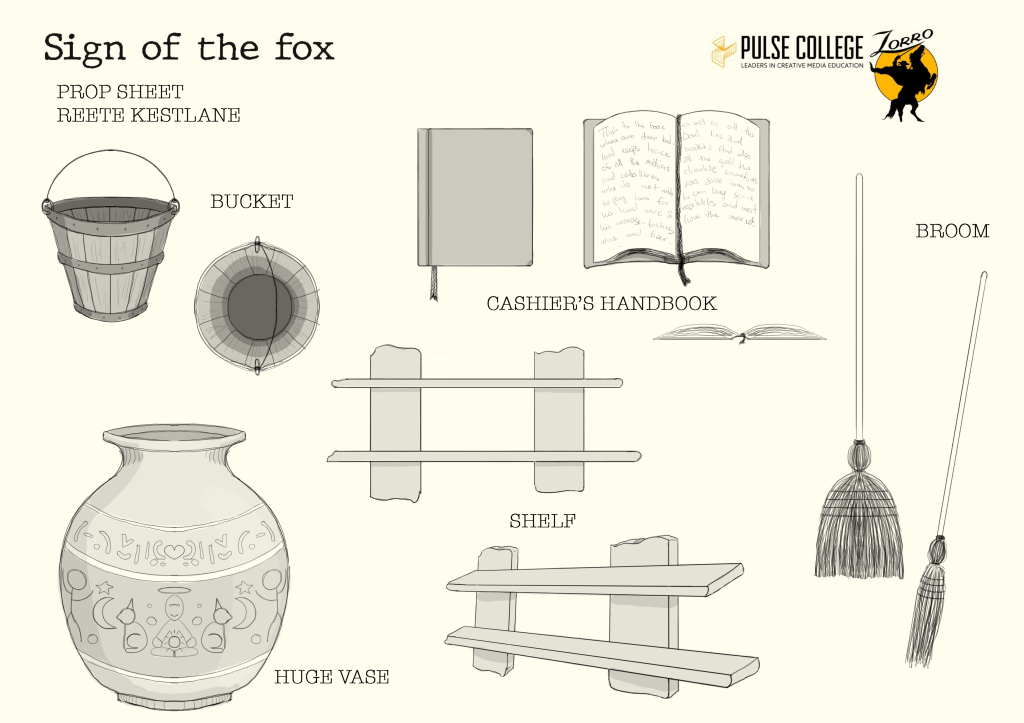 Prop Design for an animation project “Sign of the Fox: A Zorro Adventure” by the students of Pulse College in collaboration with Zorro Inc. I designed the props that were then 3D modelled and textured.