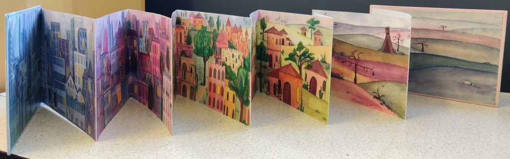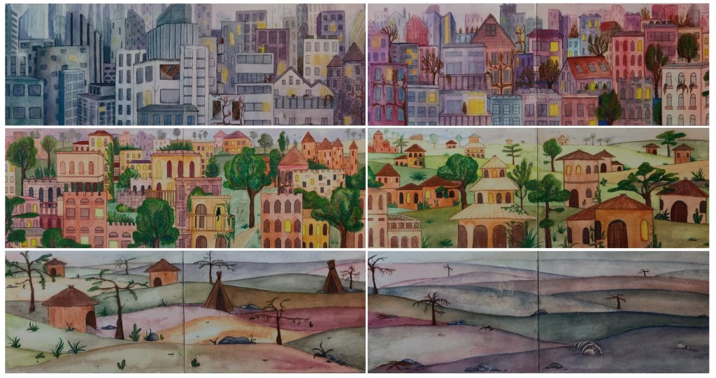 A handmade accordion book I made for Dublin Art Book Fair. It is a depiction of a world without nature.